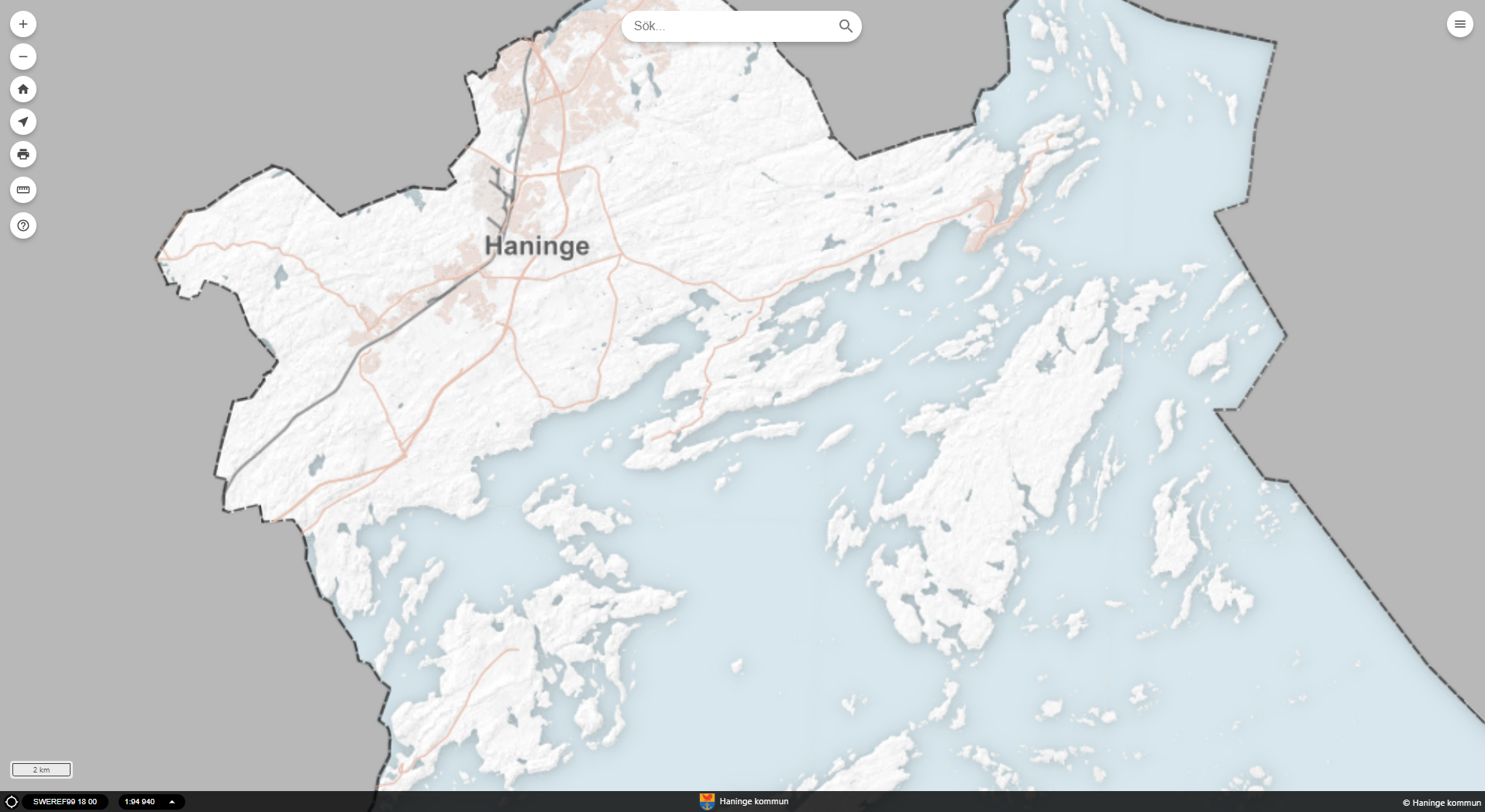 Haningen kunnan nettikartta sisältää tietoa asemakaava-alueiden, koulujen, esikoulujen, palvelutalojen, tietöiden ynnä muiden sijainnista.