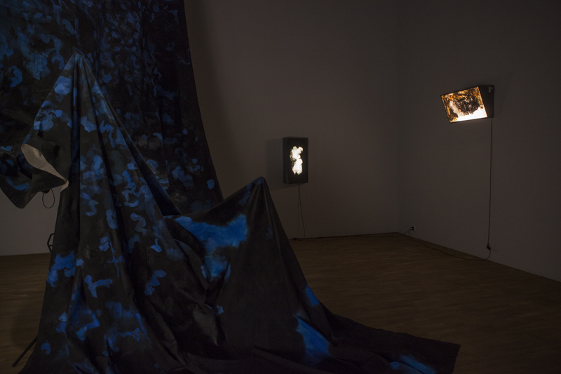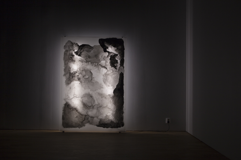 Konsthallen är mörklagd men Sofia Ekström kontrollerar noggrant det ljus som återstår. I utställningen finns omsorgsfullt ljussatta målningar som genom motiv eller tillkomstsätt refererar till fotografi. Den vita kuben har omvandlats till det mörka rummet där en inåtblickande process kan ske.